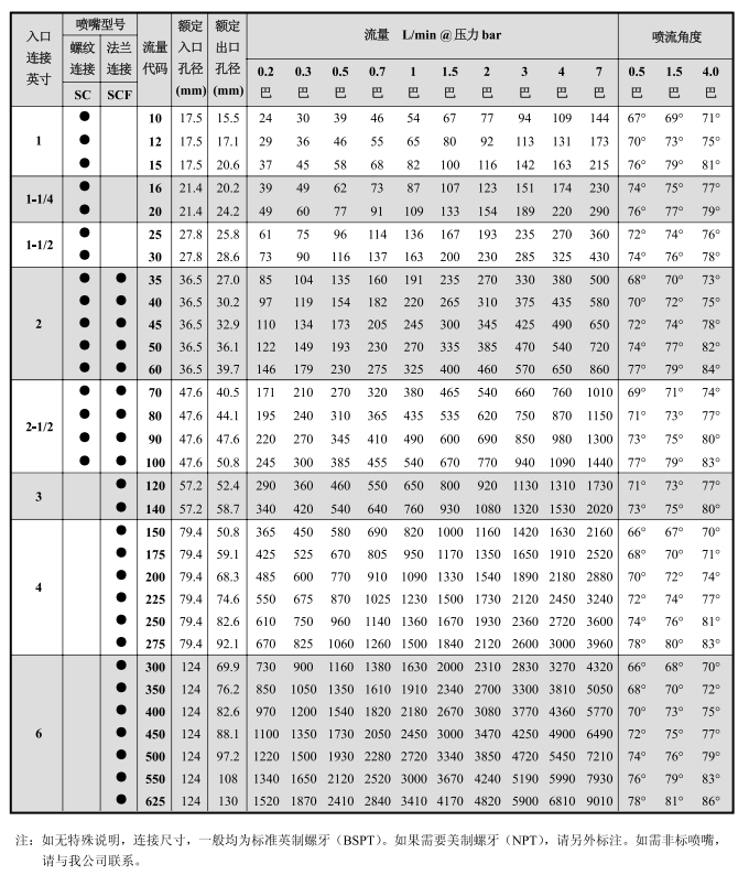 噴嘴整體精密鑄造,連接尺寸從1英寸至6英寸,單個噴嘴流量最高可達9010L/min。