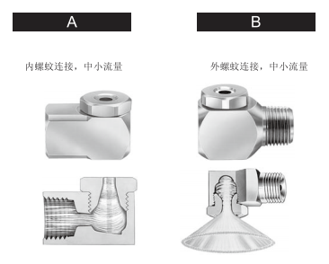 噴霧形狀為空心圓錐狀,噴射區域成空心圓環狀。