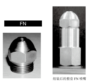 FN噴嘴依靠獨特的內部渦流葉片,采用液體壓力就可以產生非常細小的液滴,液滴的平均顆粒直徑只有40微米左右,最小霧化粒徑可達20微米,可與空氣霧化媲美。