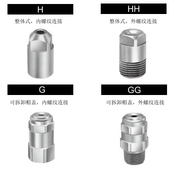 G和GG系列為可拆卸帽蓋設計,方便清洗和維護,適合較小流量的噴霧需求