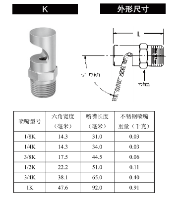 偏轉(zhuǎn)扇形噴嘴 K系列